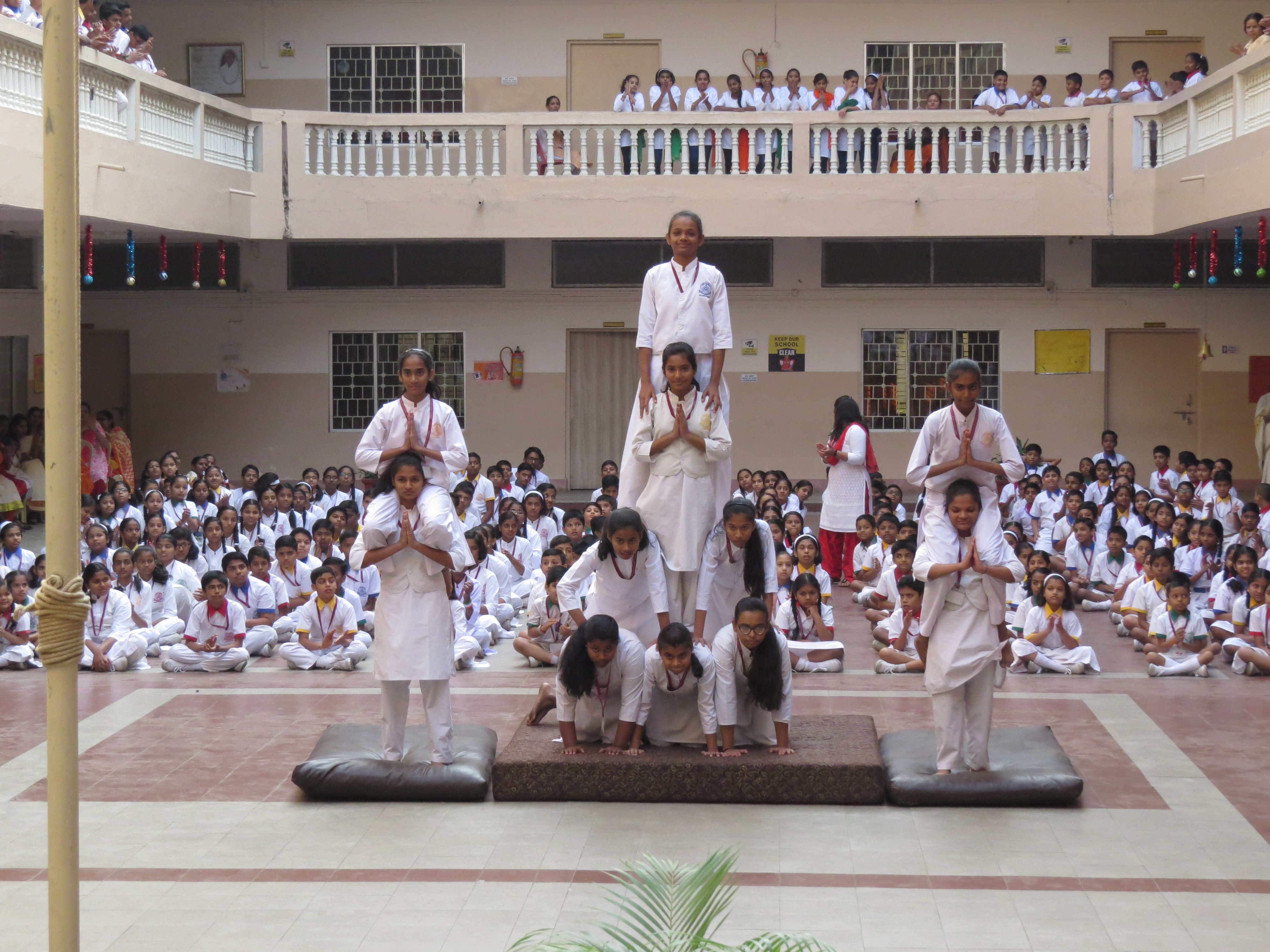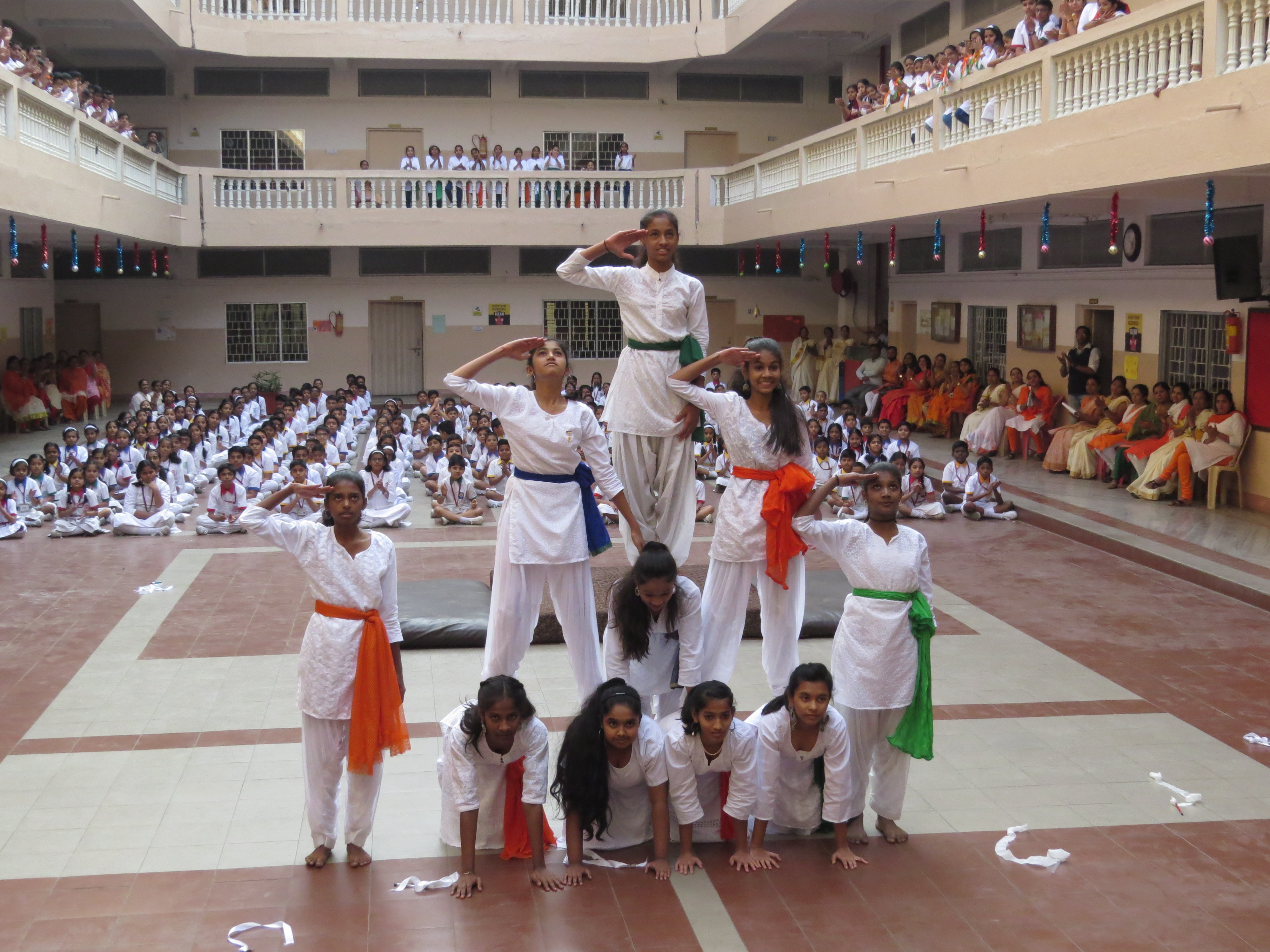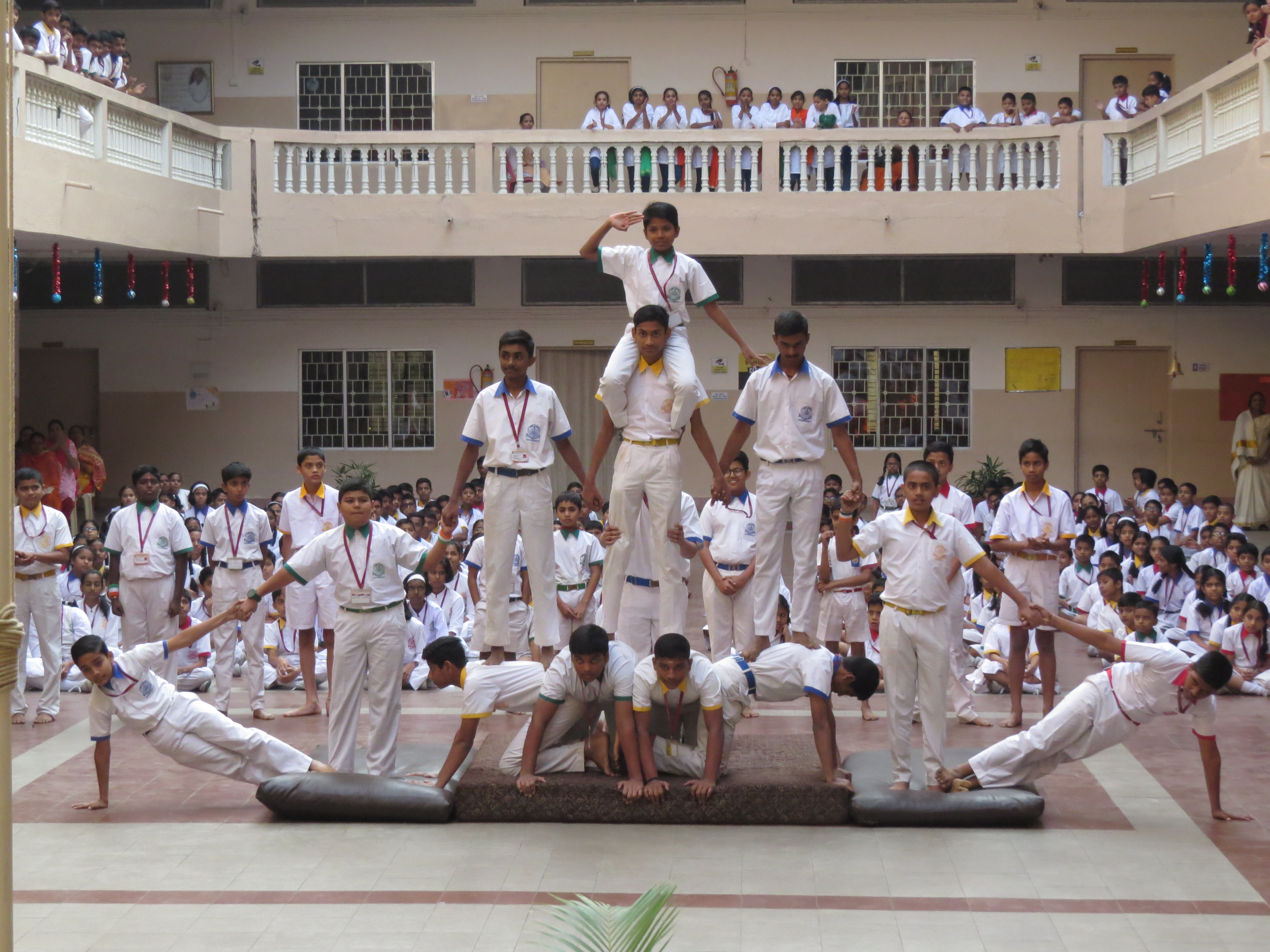 Students presented a variety of physical acts one after the other starting with Mass PT, Zumba, Hoola Hoop, Athletics, followed by a patriotic dance and ending with a Pyramid formation by both, girls and boys.