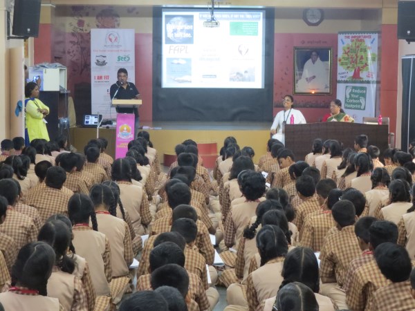 A brilliant documentary featuring the declining glaciers which impact polar bears, green house effect on gorillas and the impact of plastics on marine animals was shown, which created awareness among the students about various factors that contribute in systematically destroying the green cover of the earth. The highly engaging question answer session saw students quick to answer the tricky questions posed by the speaker. They were also keen to know how they can individually contribute towards nurturing the earth and a simple solution said it all – ”offer plant saplings as birthday gifts”. Students were also informed about Eco Achievers Olympiad to be held in the coming months and students desirous of participating were asked to register.