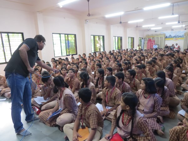 Dr. Jayakar inspired and educated the students in a thrilling and humorous manner by captivating the attention of the students and keeping them glued to the topic. By comparing Mother Earth to one’s mother, the students were able to introspect on how our attitude should be towards nature: empathetic and loving. The cycle of destruction of nature begins with humans when we carelessly strew plastic that finally end up in the oceans, which in turn affects the lives of marine life and the rampant deforestation and poaching of animals which has lead to the extinction of many species. The destruction of animal habitat will wipe out forests and will eventually impact human life. These thoughts sensitized the students about how one can love and care for nature and also extend the same towards animals. Students were also made to realize that the immediate future will consist of humans breathing through holding oxygen masks if the increasing carbon footprint is not checked.