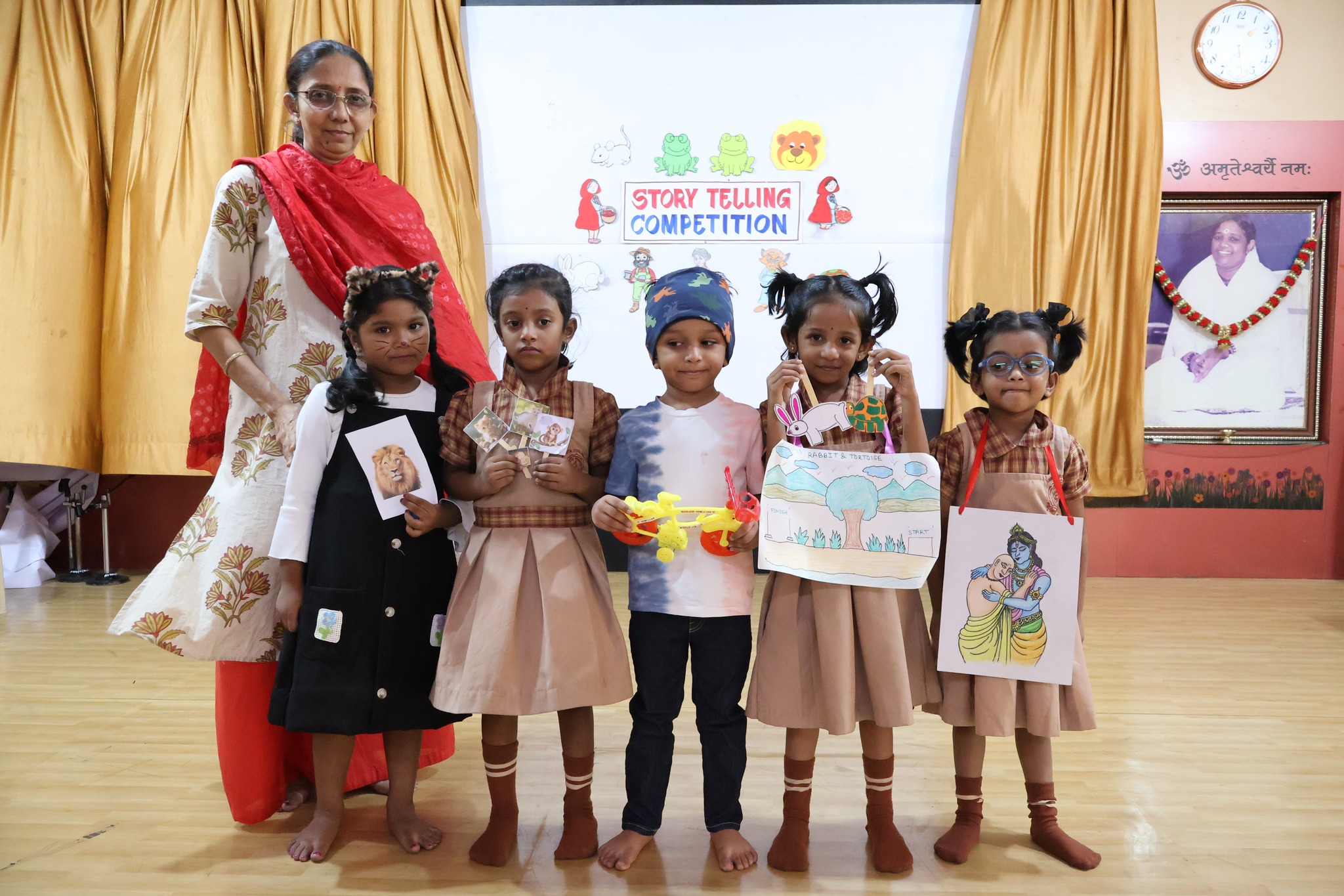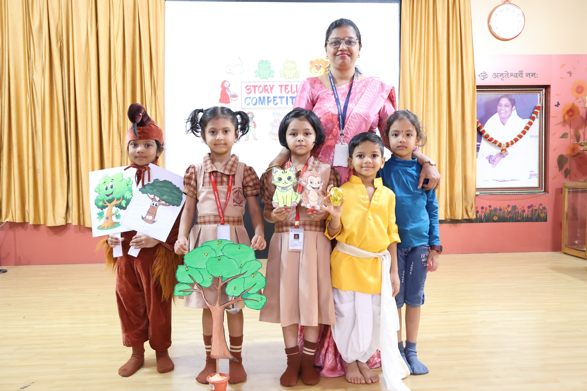 “A good story can imbibe the right values in the most impressionable age.” Competitions are the best way to boost the confidence in children. Keeping this in mind, a story telling competition was conducted for grades Nursery to Sr Kg. on 15th December at Amrita Vidyalayam. Children narrated their favourite stories with awesome enthusiasm, props, actions, voice modulation and impressive expressions. Each and every story was recited with a moral. Enacting various characters of the stories helped them evolve their young minds with valuable morals and ignited their creative skills. The competition was thoroughly enjoyed by everyone. The little story tellers won everyone’s heart and were applauded.