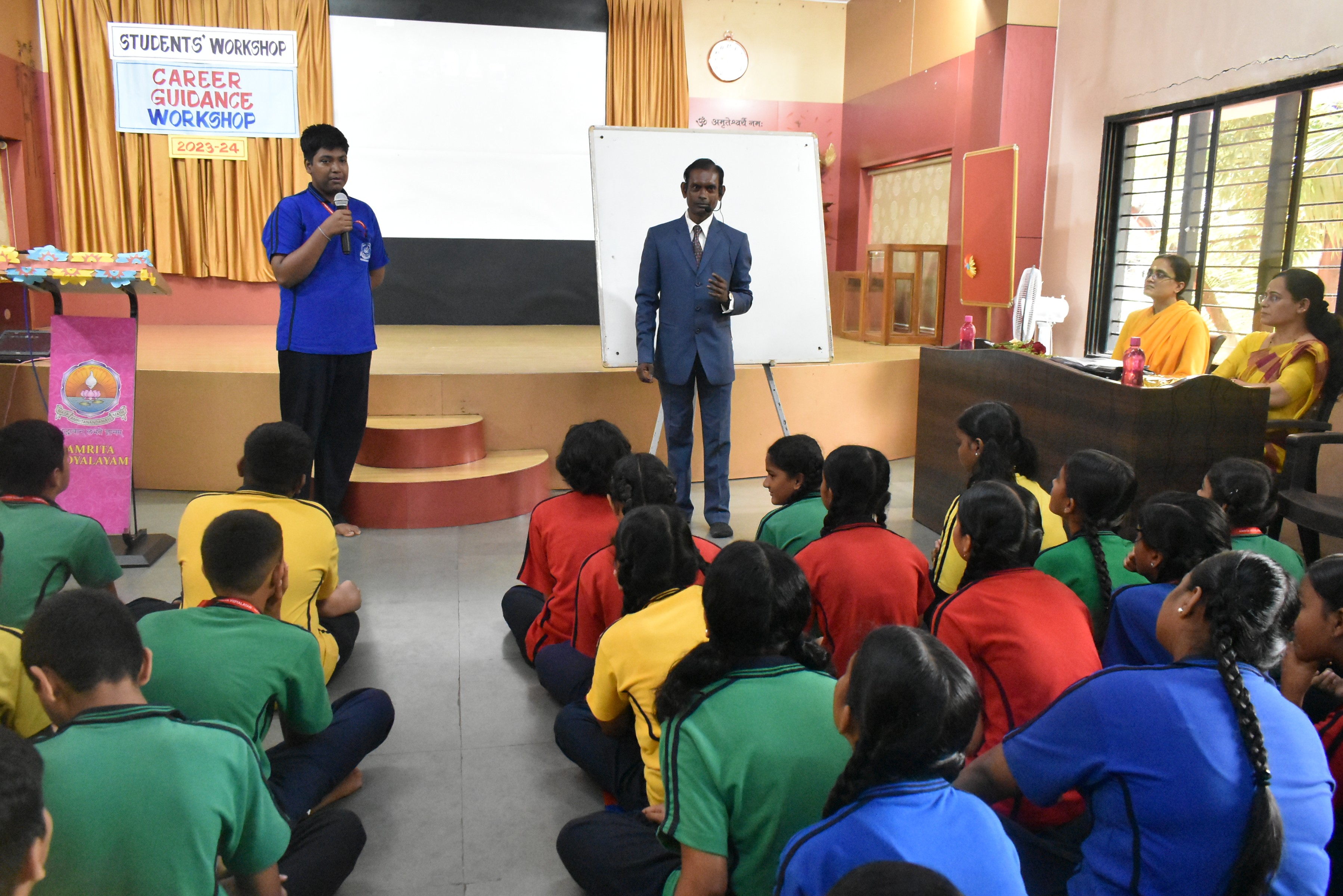 Administrator Sharanyamrita Chaitanyaji addressed the students about significance of positive affirmations, goal setting and hard work in student’s life.