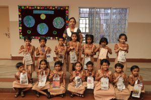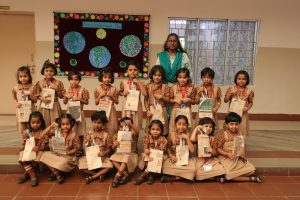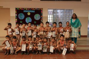 JR. KG students explored their creativity with cotton dabbing, joyfully colouring the Earth and learning about its beauty.